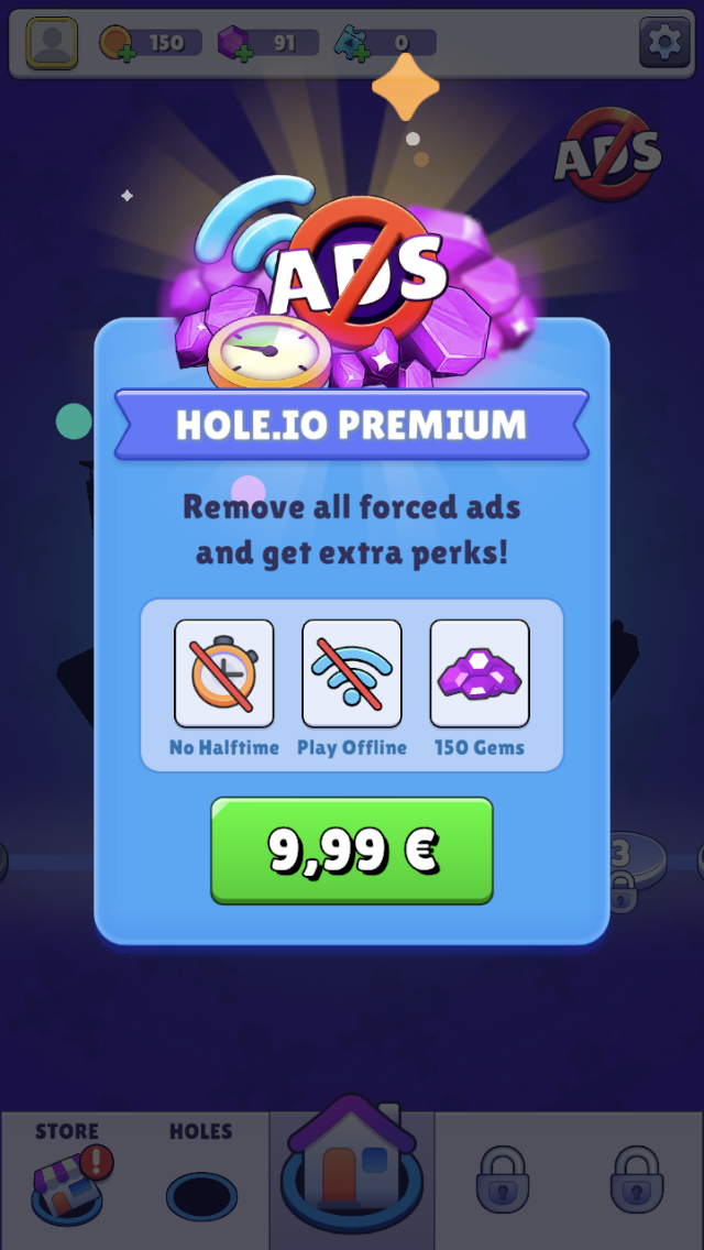 Hole.io reste donc un petit jeu multijoueur divertissant mais imparfait. L’idée de base est amusante, cependant trop d’aspects sont négligés, avec en particulier une omniprésence de publicités qui finit par gâcher l’expérience globale.
